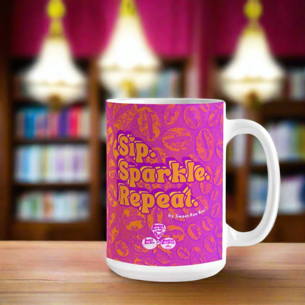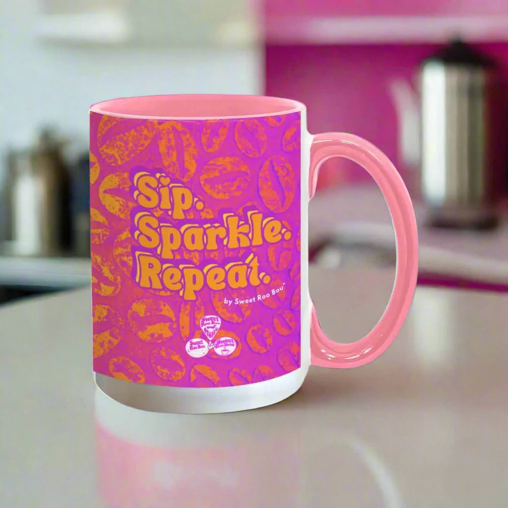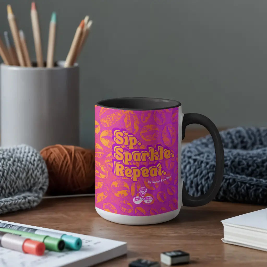Sip. Sparkle. Repeat. Neon Coffee Bean Mug